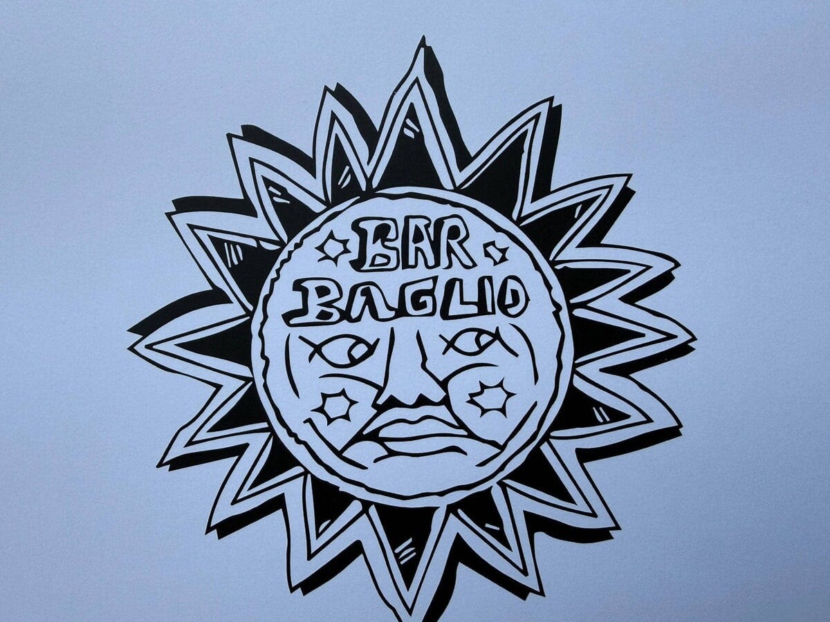 Il logo del locale è disegnato da Canemorto, collettivo anonimo di artisti noto per gli interventi di arte urbana, che ha tracciato un sole ammiccante e pieno di raggi.